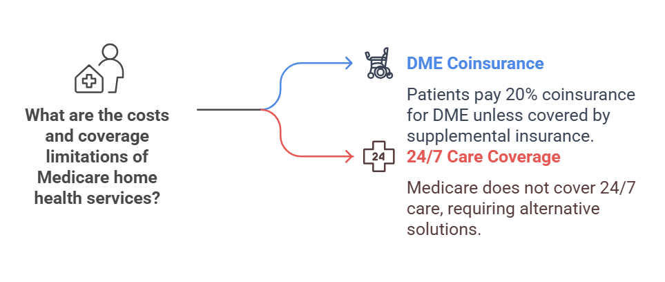 For most Medicare-approved home health services, patients do not have to pay out of pocket. Medicare Part A (Hospital Insurance) or Part B (Medical Insurance) will typically cover these services at 100%, as long as eligibility requirements are met.