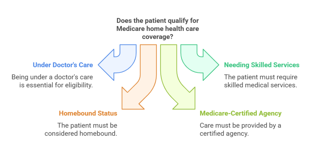 Medicare provides coverage for home health care across the United States, including Texas, following federal guidelines. However, coverage isn’t automatic for everyone. To qualify, a patient must meet specific eligibility requirements, including being under a doctor’s care, needing skilled medical services, and being considered homebound. Additionally, Medicare will only cover care provided by a Medicare-certified home health agency.