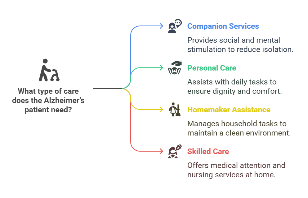 - Homemaker Assistance – Simple chores can become overwhelming for Alzheimer’s patients. In-home aides help with housekeeping, grocery shopping, meal preparation, and other household tasks, keeping the environment clean and manageable.